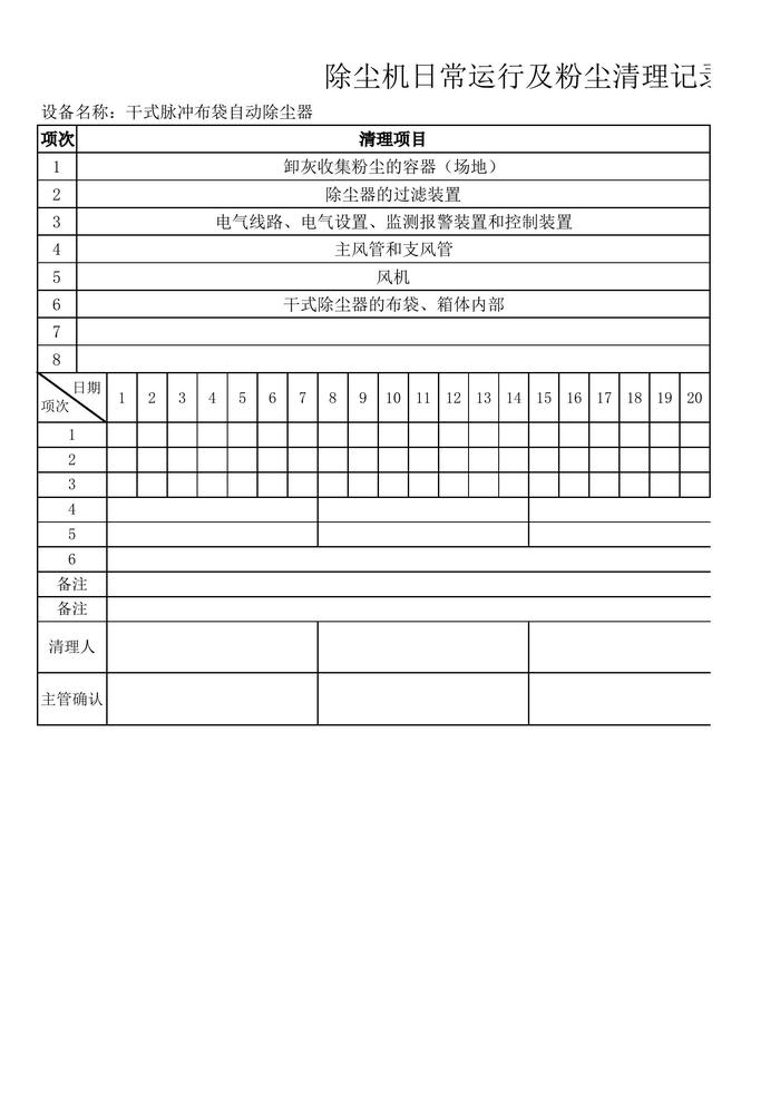 設(shè)備粉塵清掃記錄表xls