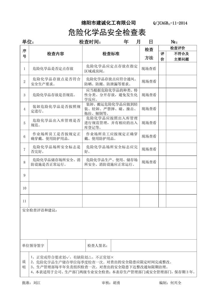 危險(xiǎn)化學(xué)品安全檢查表(4)doc
