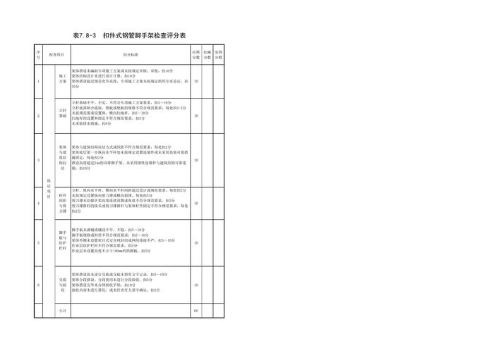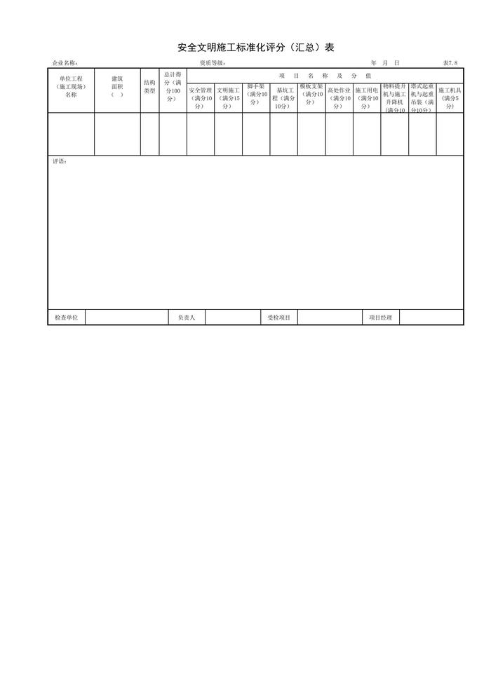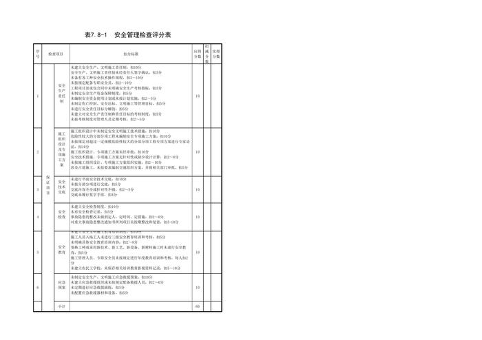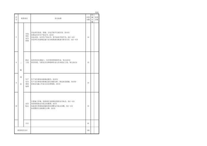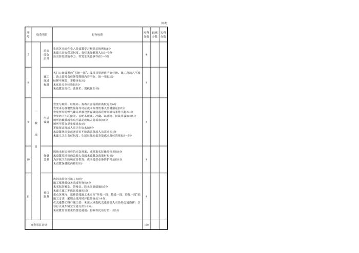安全文明施工標(biāo)準(zhǔn)化評分表xls