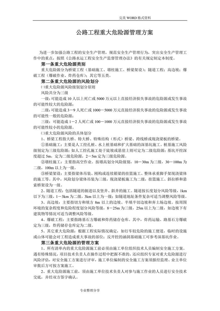 公路工程重大危險(xiǎn)源管理實(shí)施方案doc