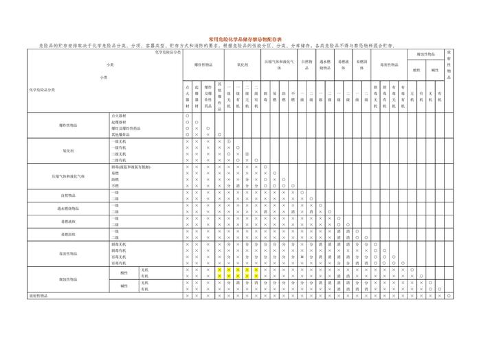 常用危險(xiǎn)化學(xué)品儲(chǔ)存禁忌物配存表(1)docx