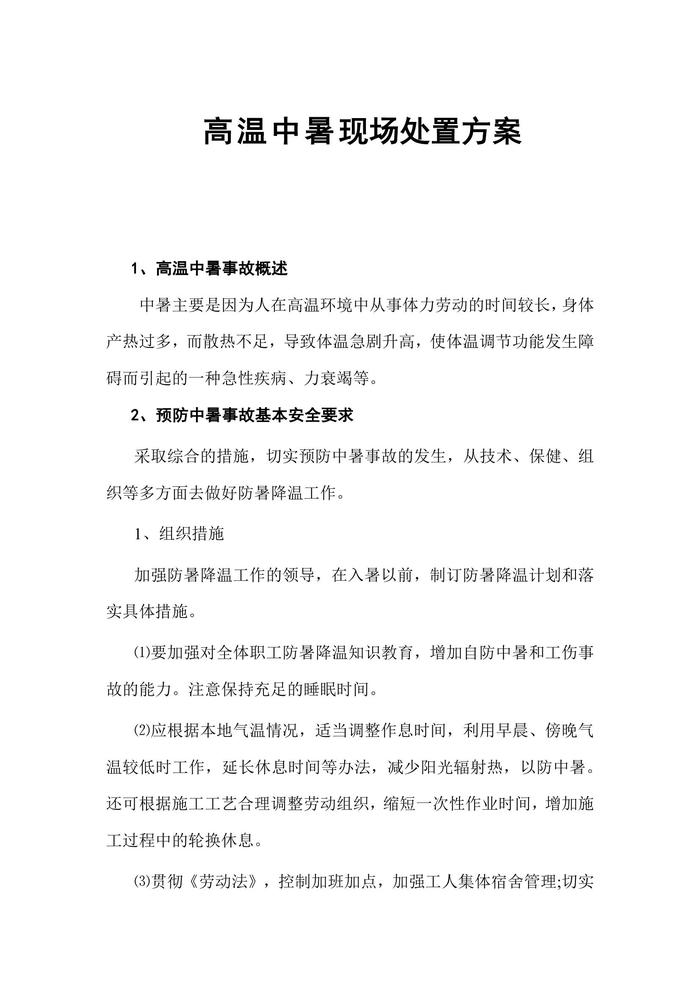 高溫中暑現(xiàn)場處置方案docx