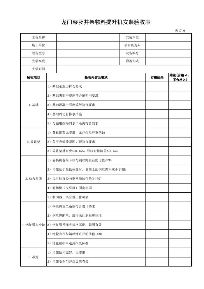龍門架及井架物料提升機安裝驗收表xls