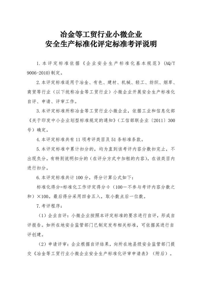 冶金等工貿(mào)行業(yè)小微企業(yè)安全生產(chǎn)標(biāo)準(zhǔn)化評定標(biāo)準(zhǔn)doc