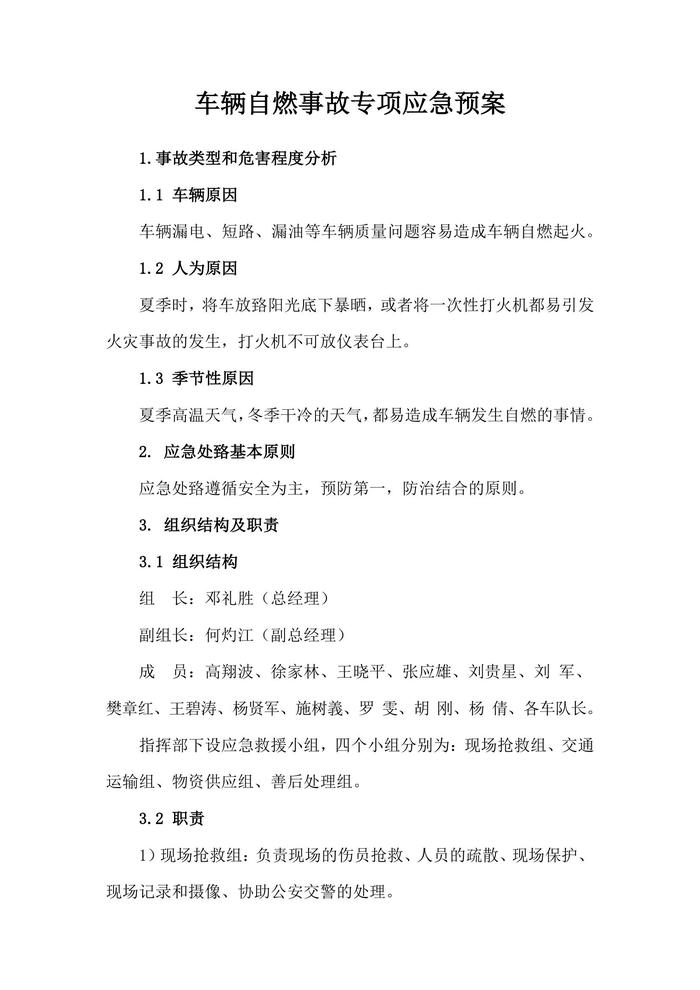 車輛自燃事故專項(xiàng)應(yīng)急預(yù)案docx