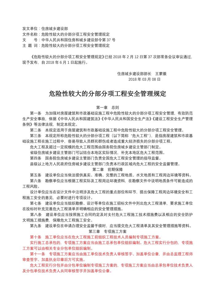《危險性較大的分部分項工程安全管理規(guī)定》(令第37號)doc