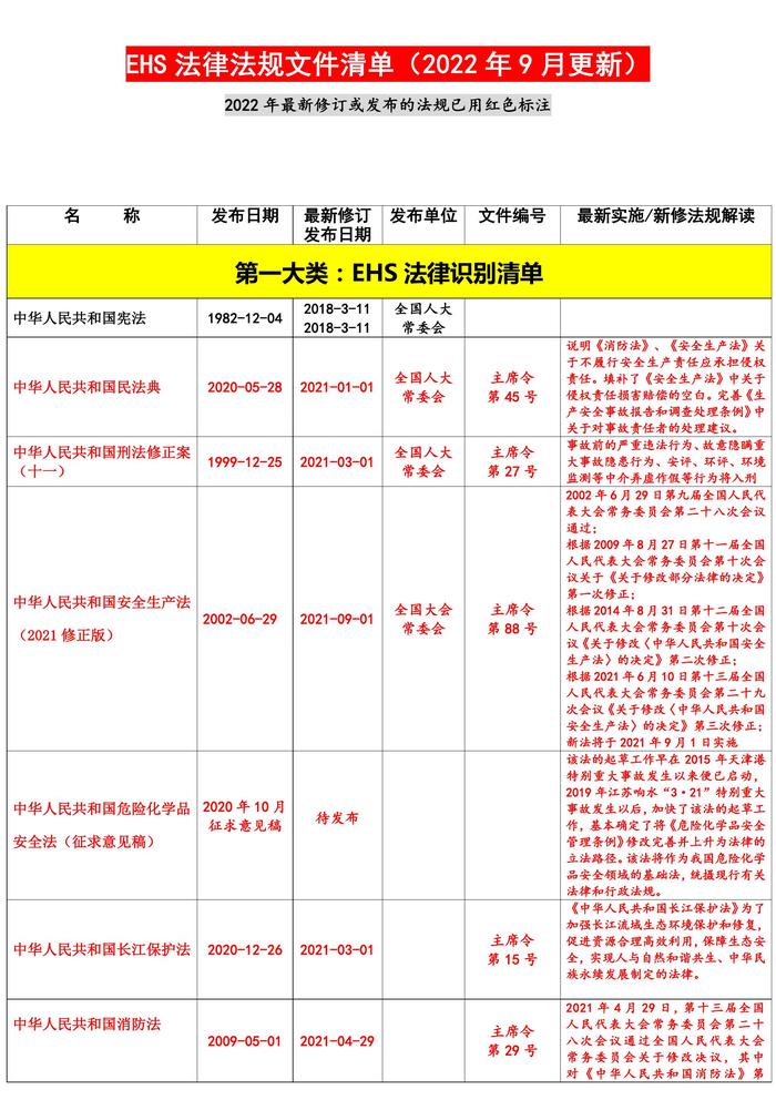 2022年9月更新安全法律法規(guī)文件清單docx