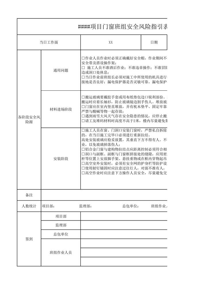 門窗班組安全生產(chǎn)指引表xlsx