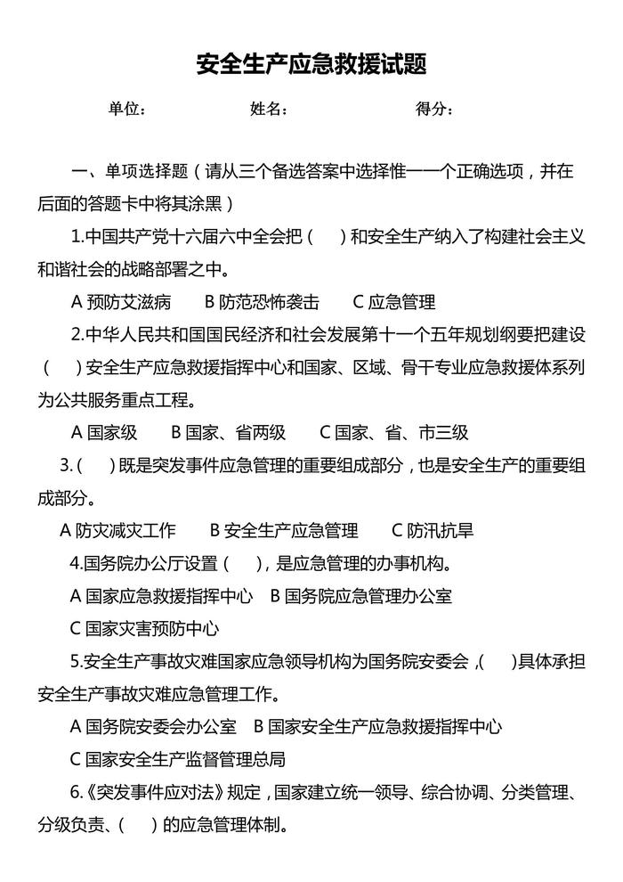 安全生產(chǎn)應(yīng)急試題及答案docx