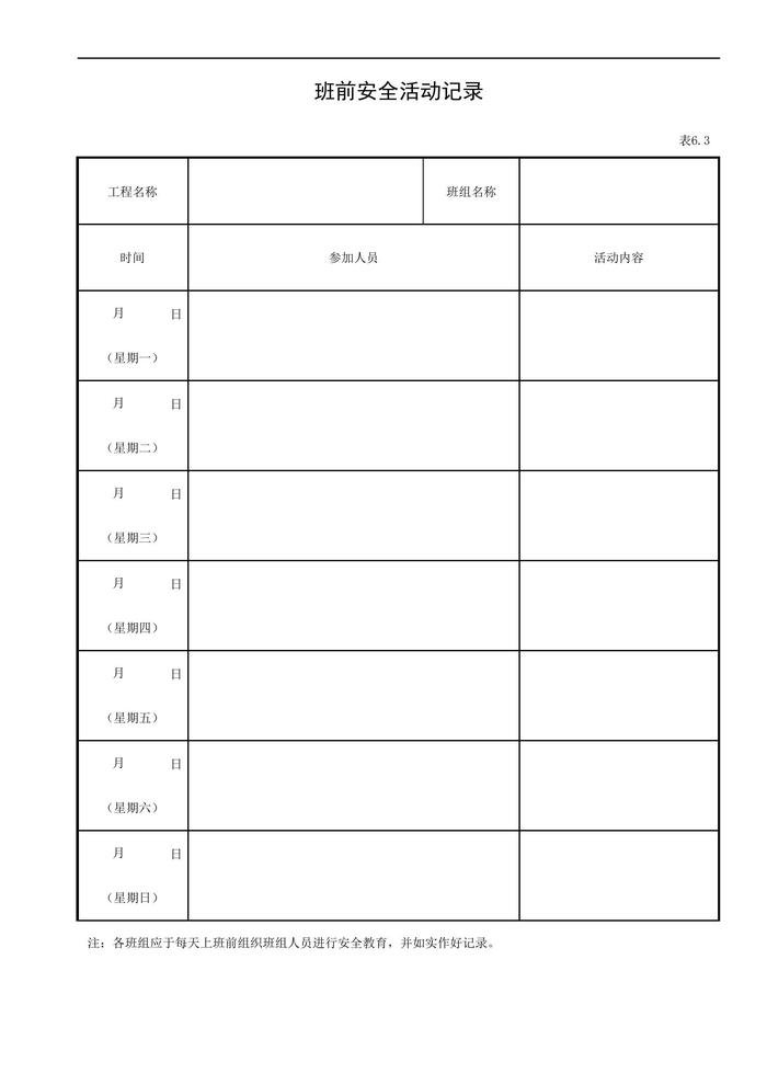 班前安全活動(dòng)記錄xls