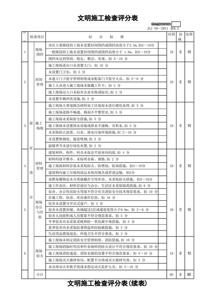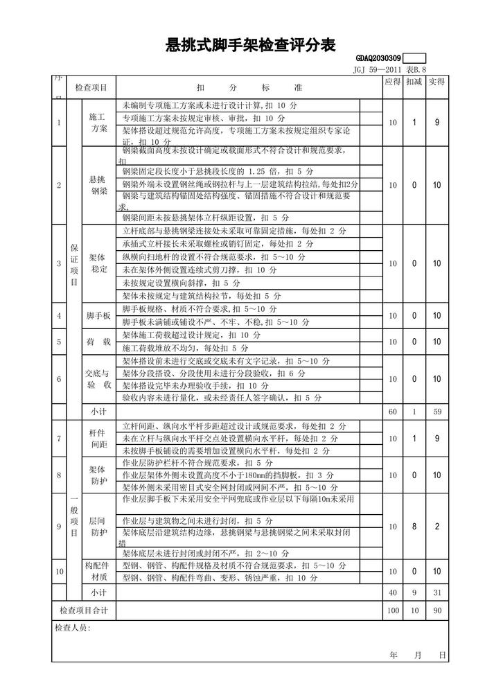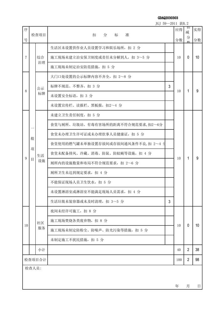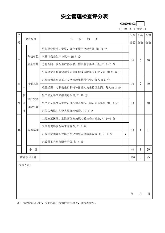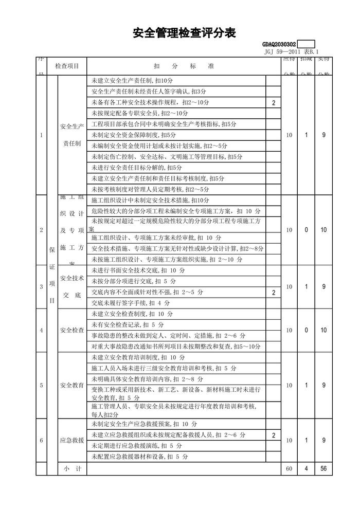 最新版-2011安全檢查評(píng)分表(全套自動(dòng)計(jì)算)xls