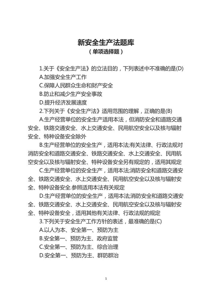新安全生產(chǎn)法-單項(xiàng)選擇題docx