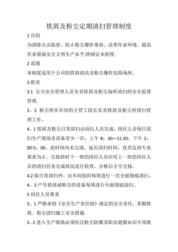 鐵屑及粉塵清掃管理規(guī)章制度doc