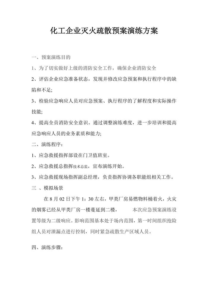 化工企業(yè)滅火疏散預(yù)案演練方案docx