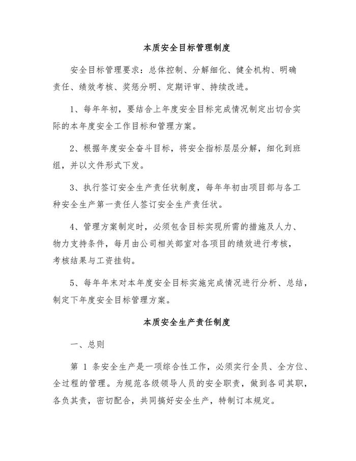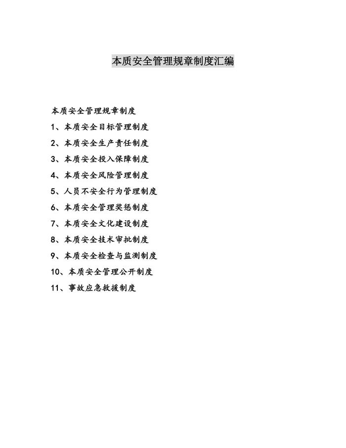 本質(zhì)安全管理規(guī)章制度匯編docx