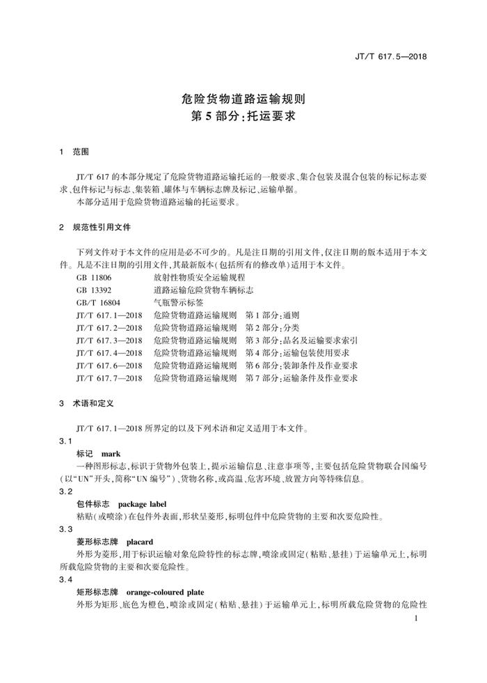 JT∕T 6175-2018 危險(xiǎn)貨物道路運(yùn)輸規(guī)則 第5部分:托運(yùn)要求pdf