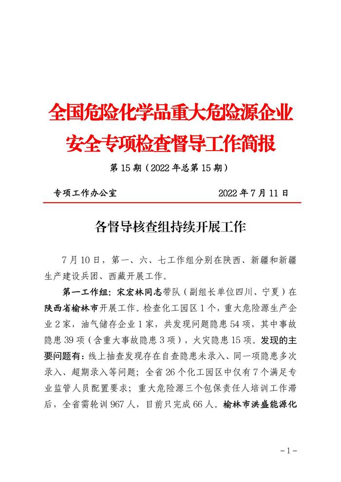 全國危險化學(xué)品重大危險源企業(yè)專項檢查督導(dǎo)工作簡報(第15期)pdf