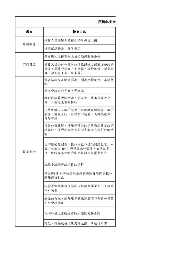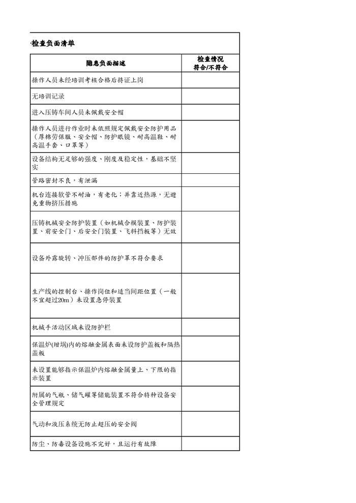 壓鑄機(jī)安全檢查負(fù)面清單xlsx