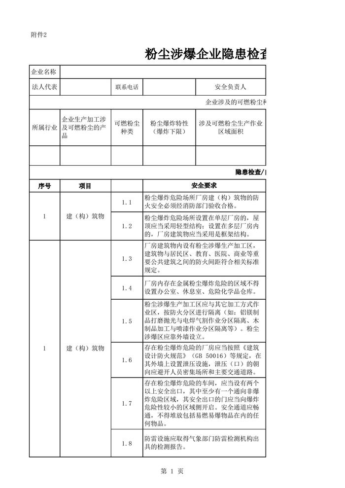 粉塵涉爆企業(yè)隱患檢查自查表(修訂版)xlsx