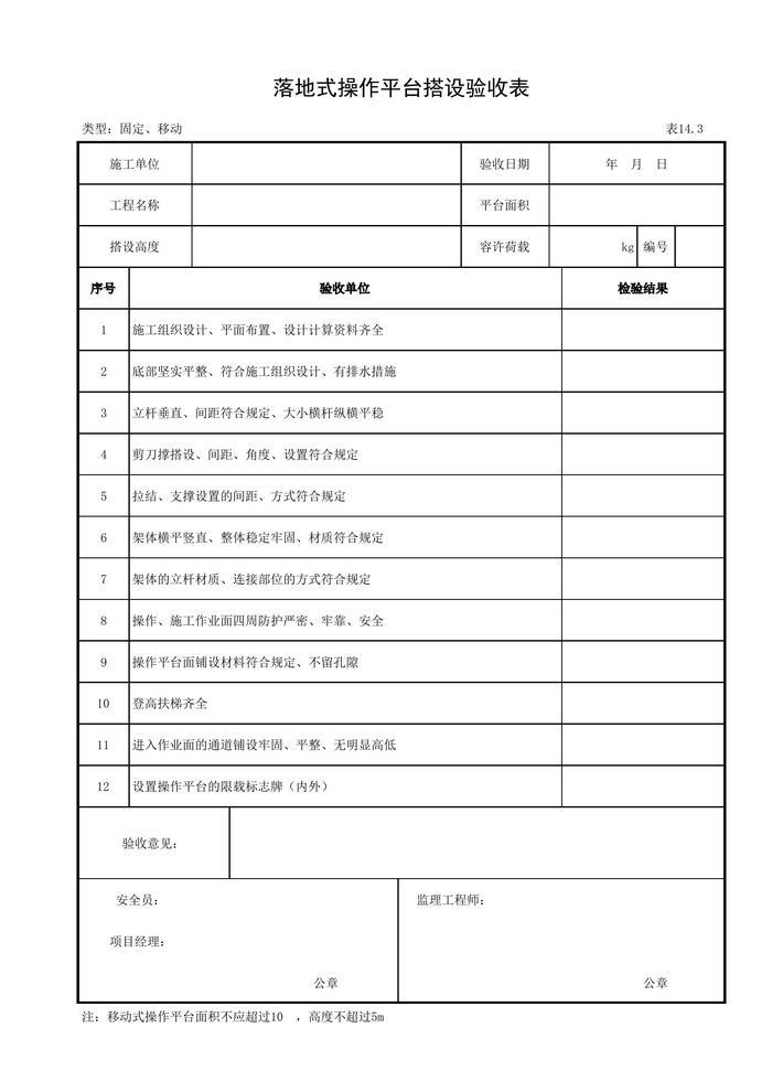 落地式操作平臺(tái)搭設(shè)驗(yàn)收表xls