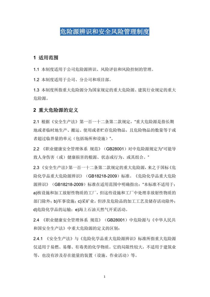 危險源的辨識和安全風險管理制度docx