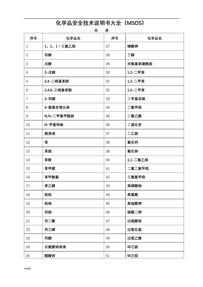 化學(xué)品安全技術(shù)說明書大全(MSDS)doc