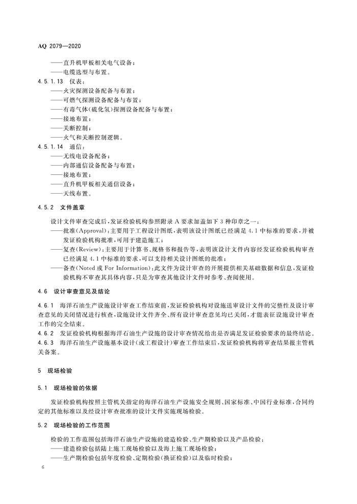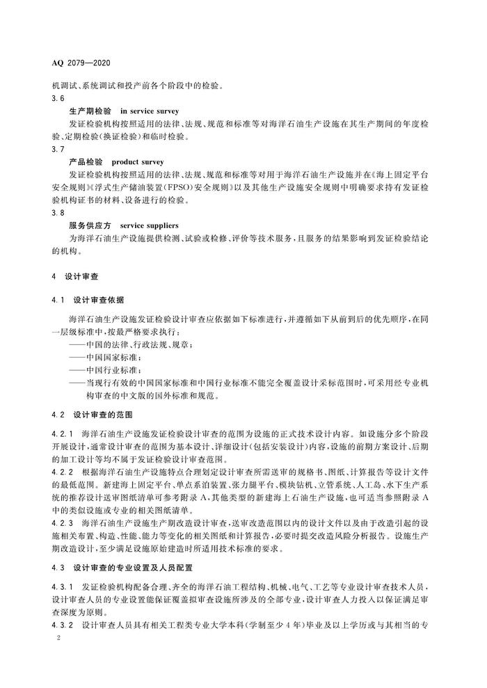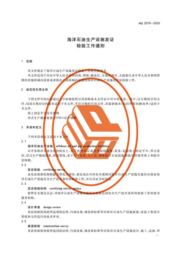 AQ 2079-2020 海洋石油生產(chǎn)設(shè)施發(fā)證檢驗(yàn)工作通則pdf