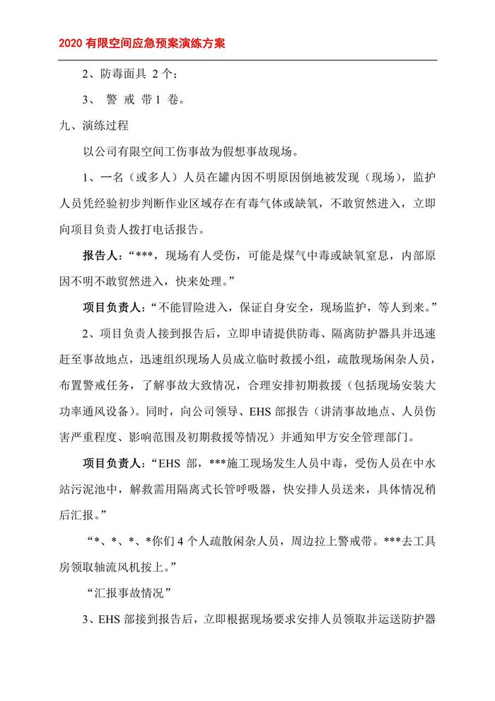 有限空間應(yīng)急預(yù)案演練方案、記錄表格doc 有限空間應(yīng)急預(yù)案演練方案、記錄表格doc