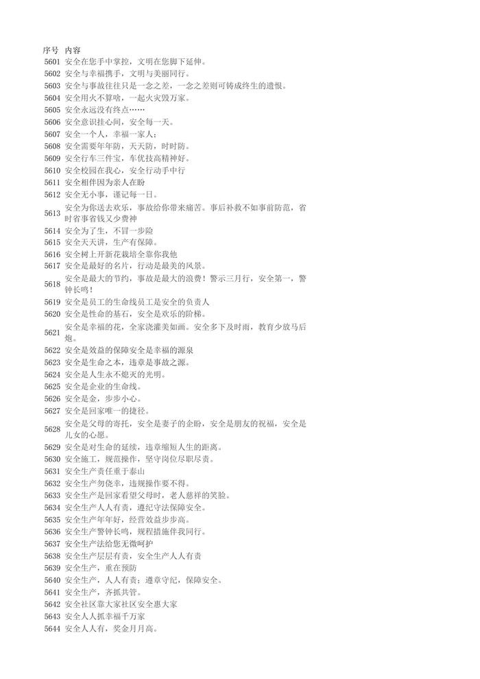【安全標語口號】5601-5696xlsx