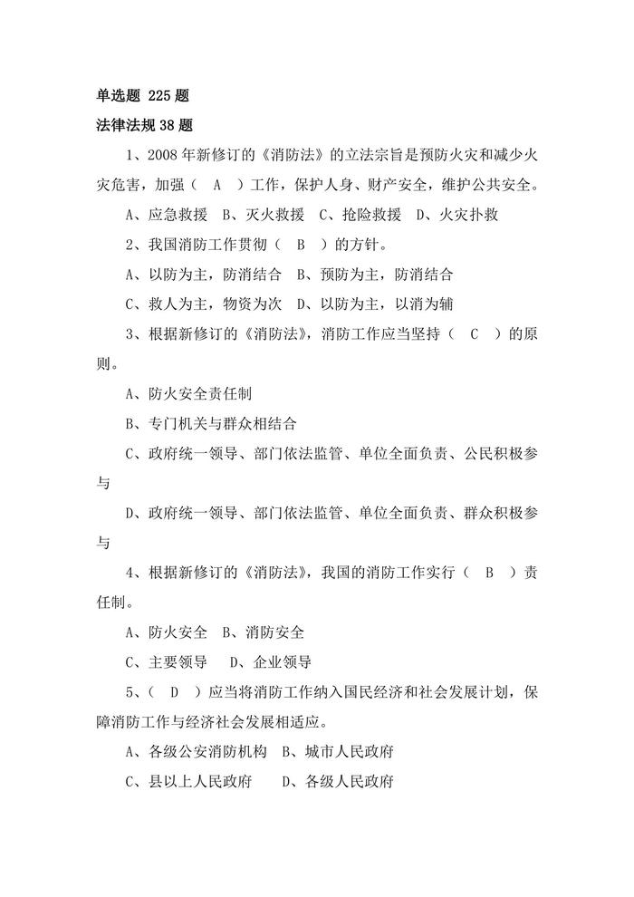 消防防火題庫(單選225題)doc