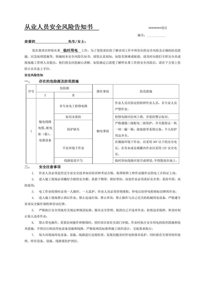 臨時用電風(fēng)險告知書doc