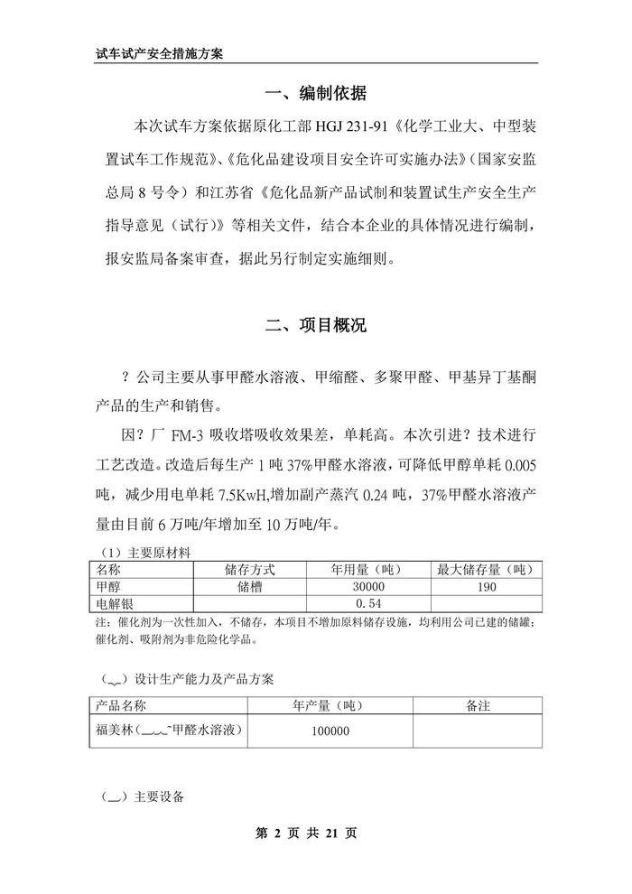 化工裝置試車試產(chǎn)安全措施方案doc