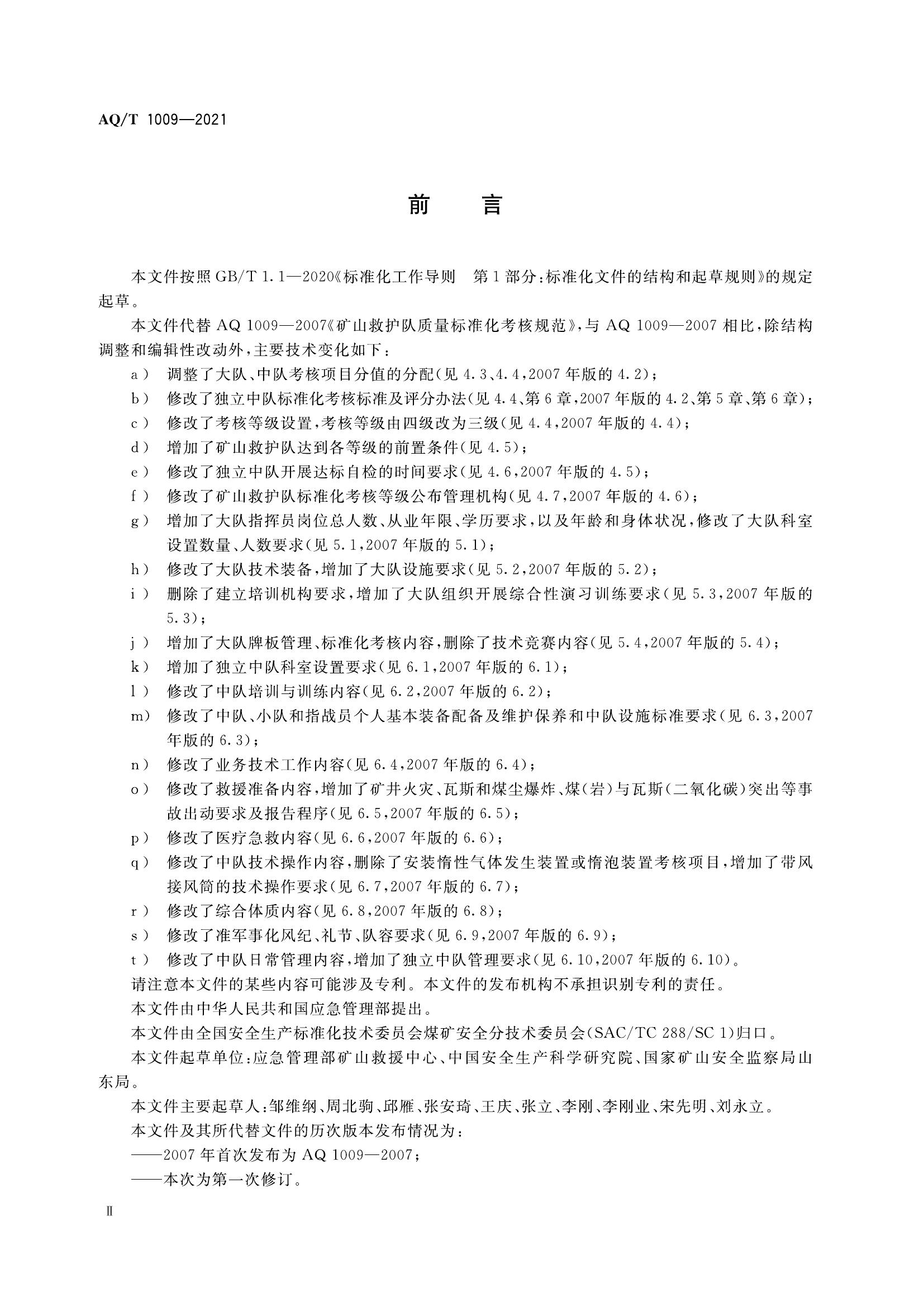 AQT 1009-2021 礦山救護(hù)隊(duì)標(biāo)準(zhǔn)化考核規(guī)范pdf