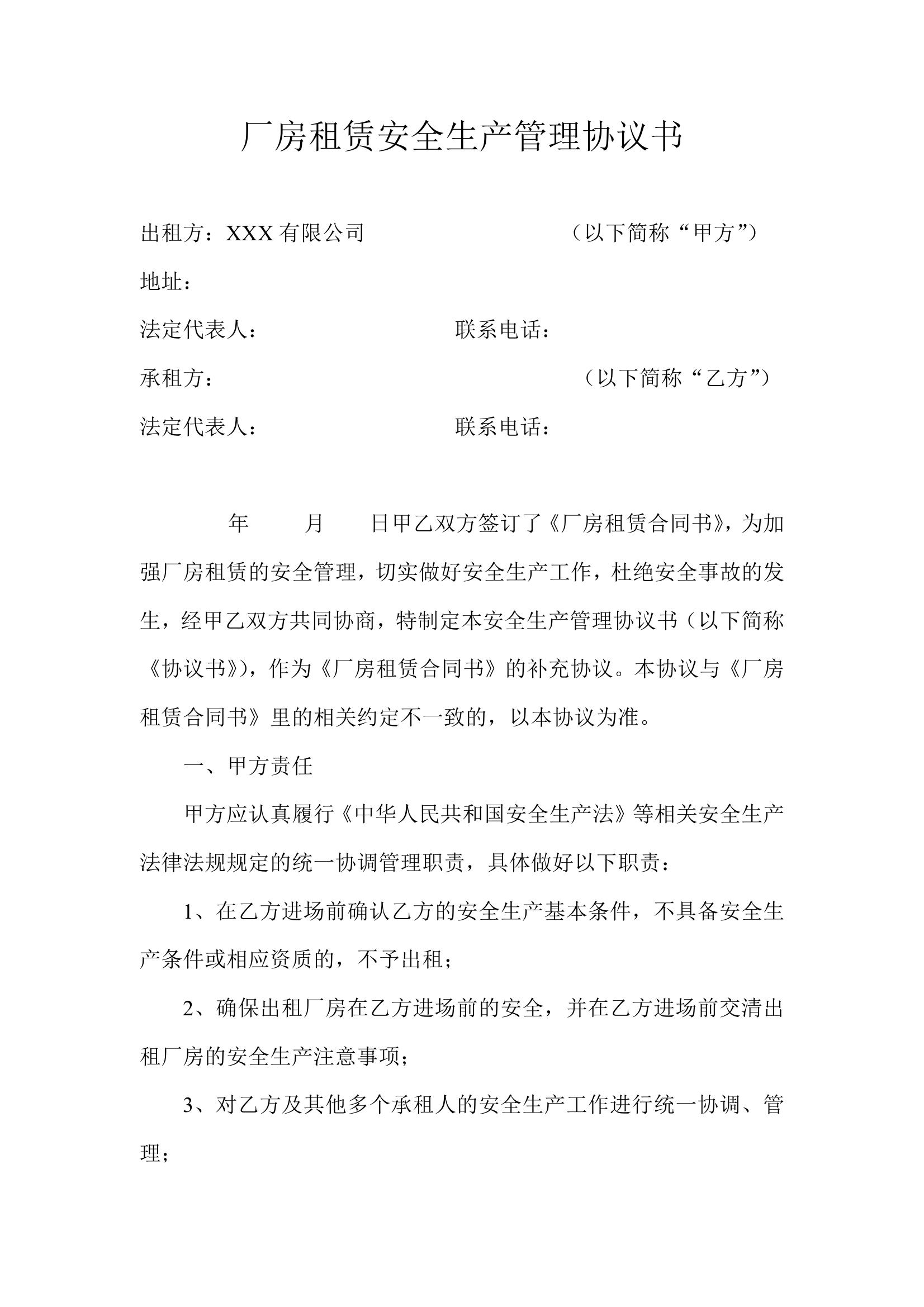 廠房租賃安全生產(chǎn)管理協(xié)議書(shū)doc