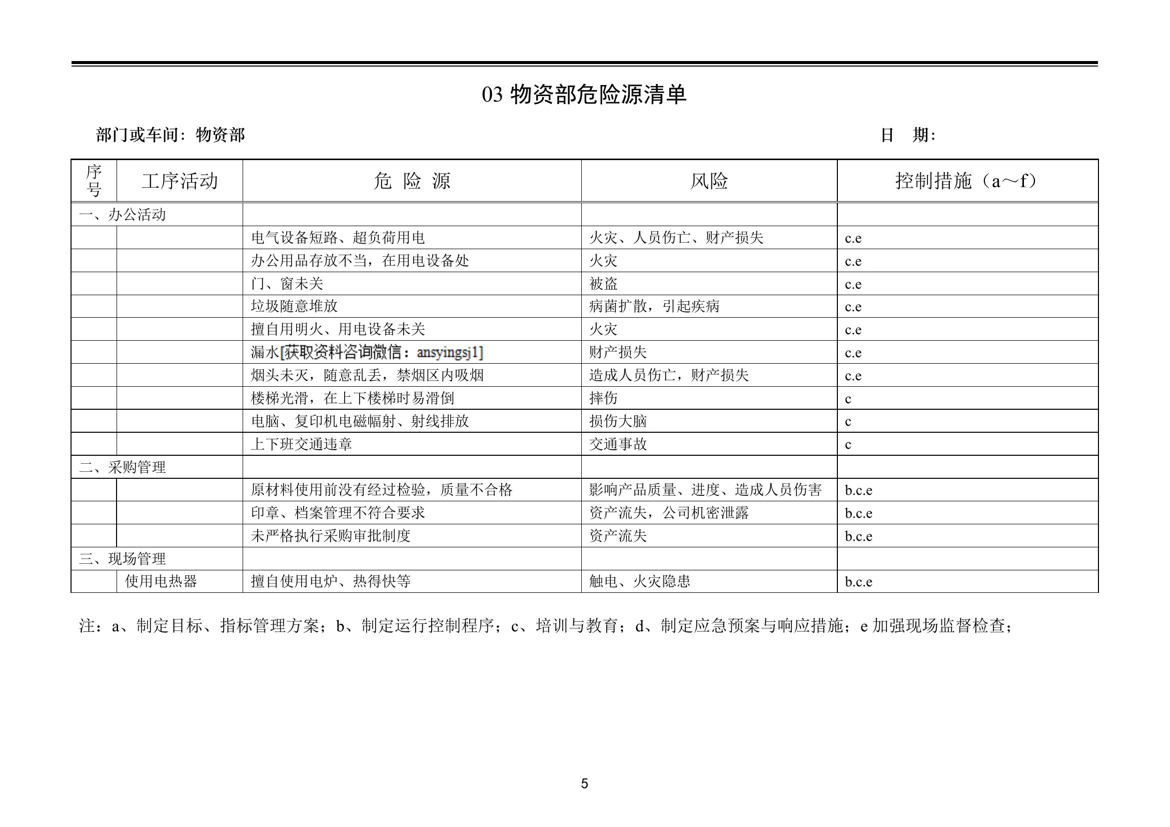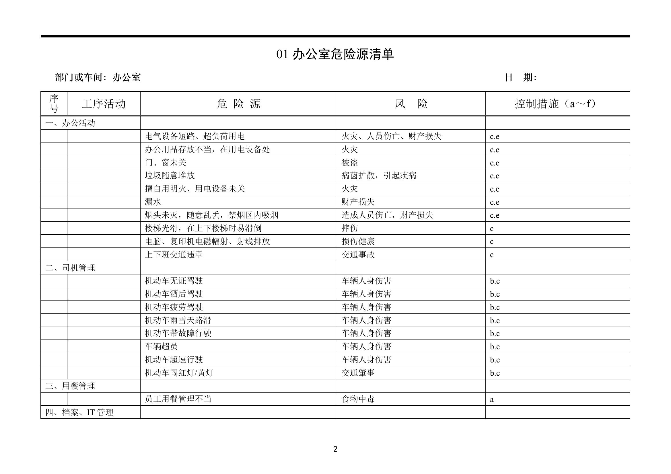 公司主要部門及車間危險源清單docx