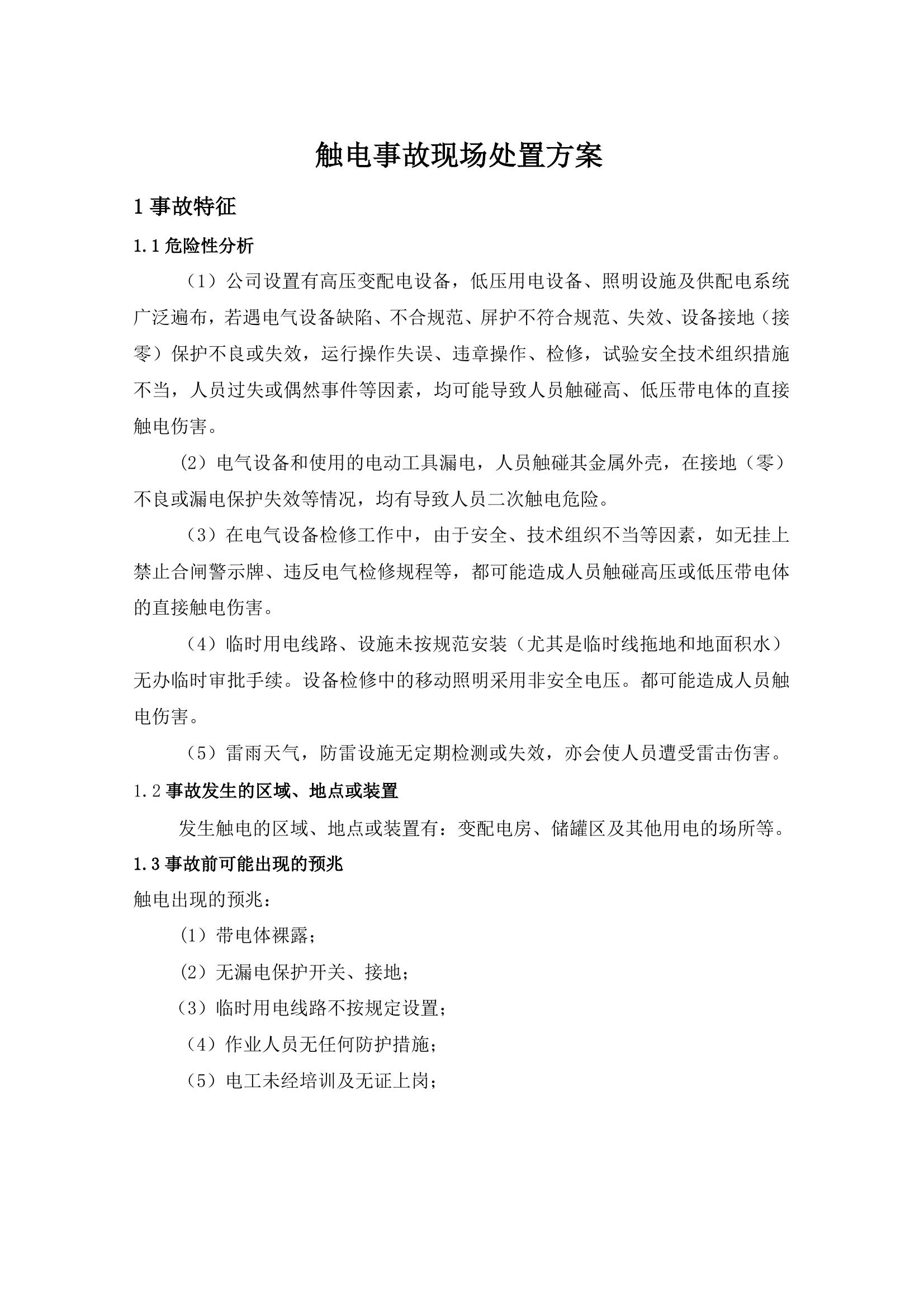 觸電事故現(xiàn)場處置方案doc