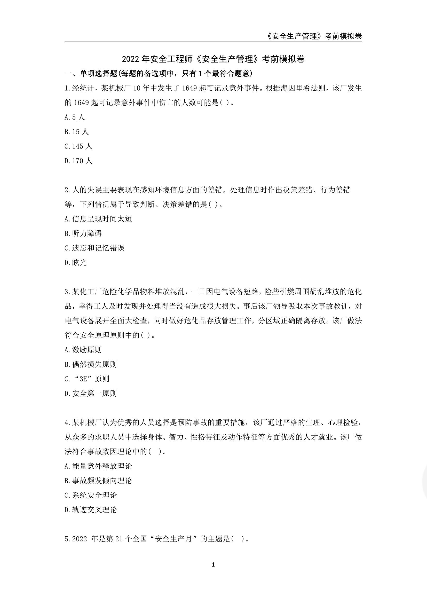 【管理】2022注安黃金考前預(yù)測(cè)卷(推薦)pdf