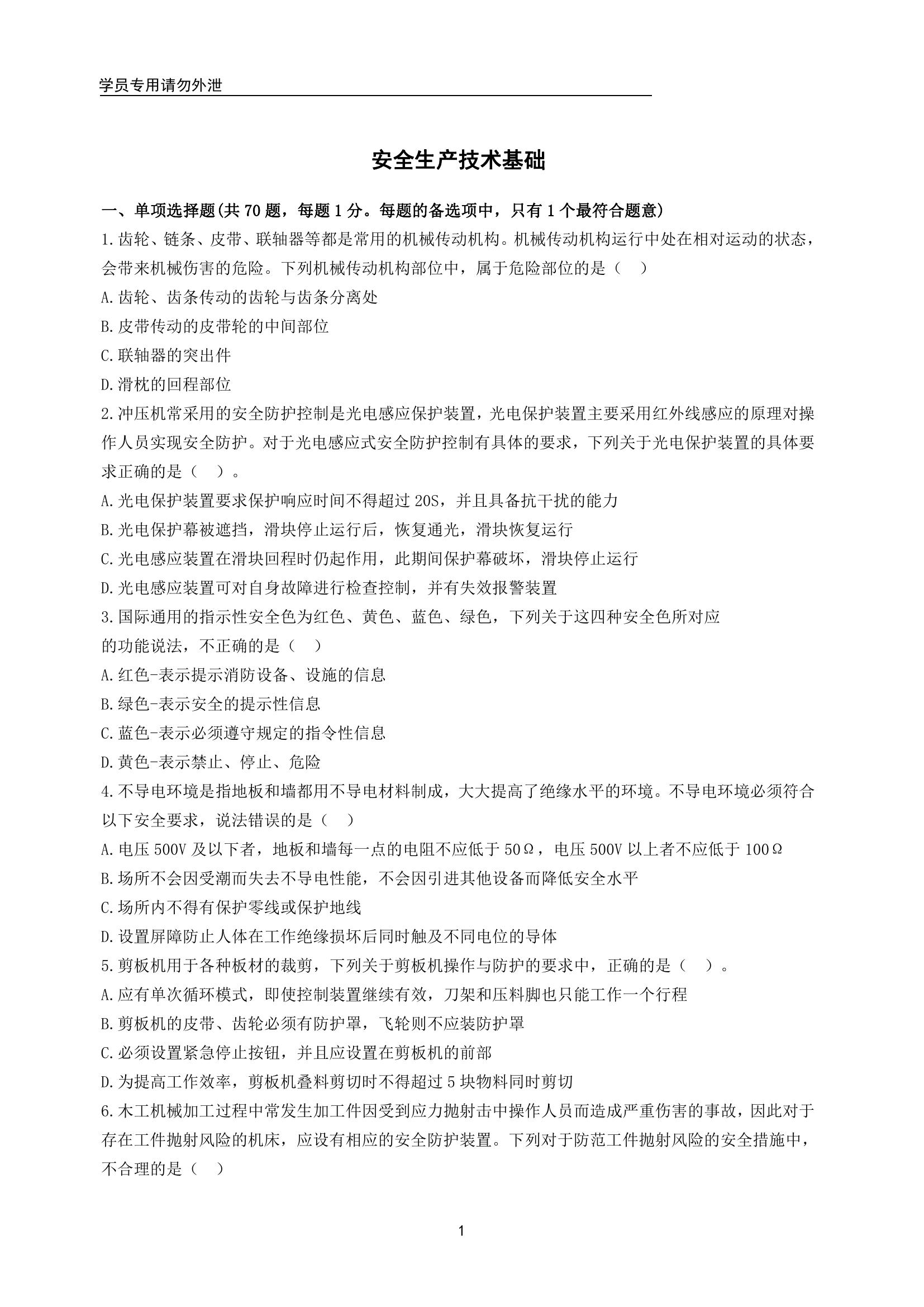 2022中級(jí)注安臨考沖刺模擬卷:技術(shù)一pdf