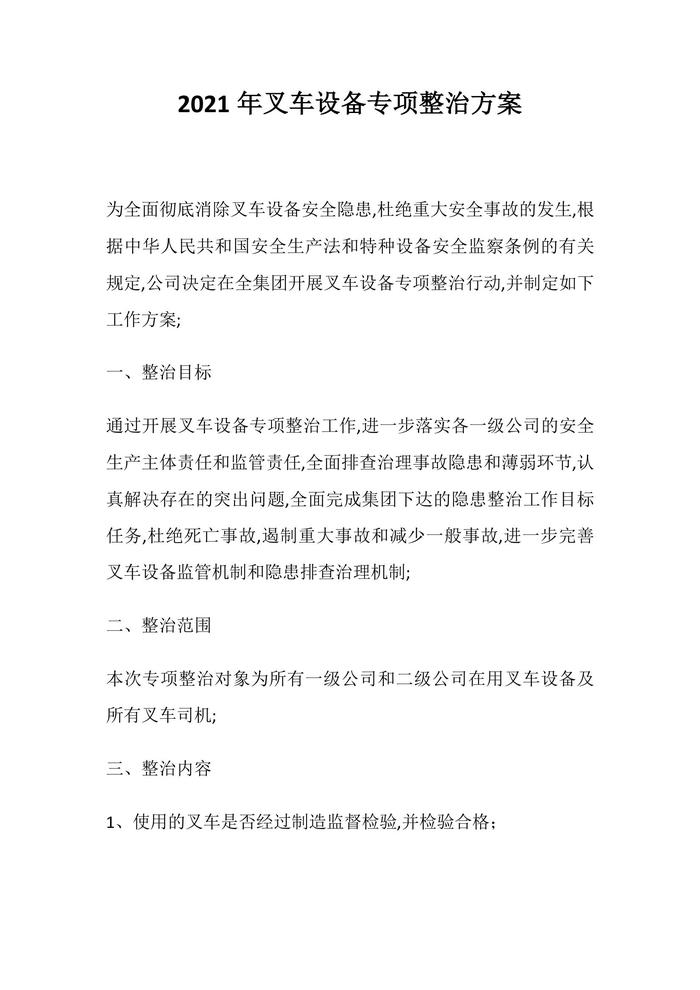 叉車設(shè)備專項(xiàng)整治方案docx