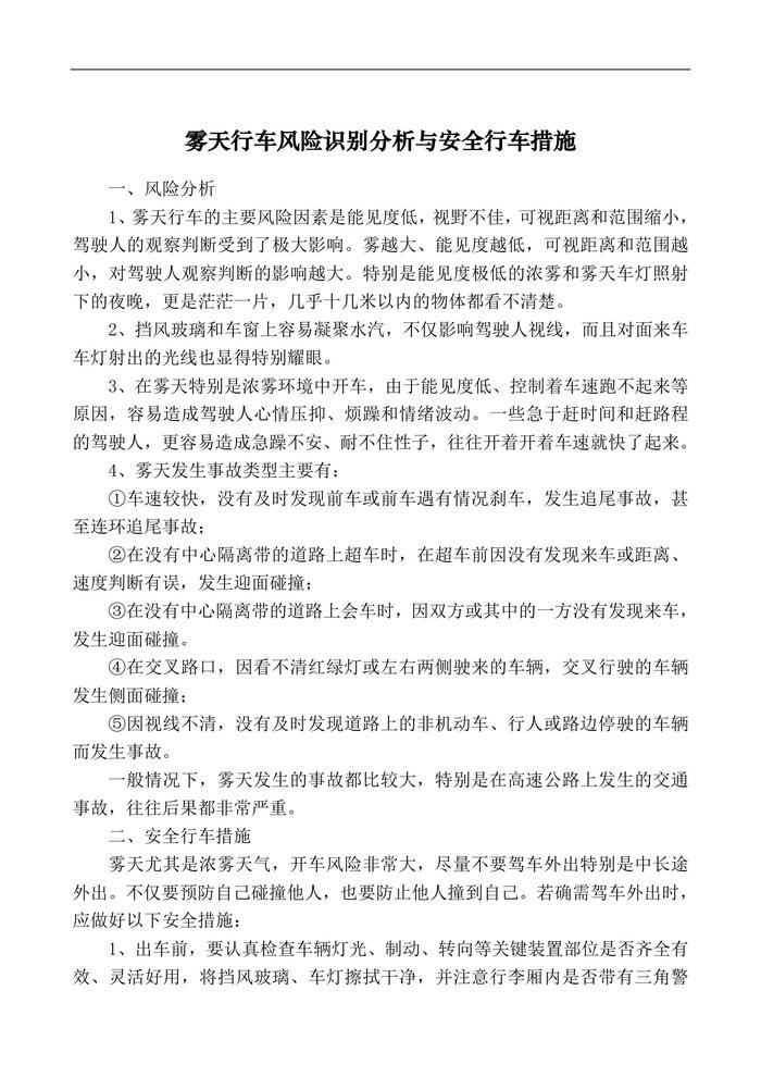 霧天行車風(fēng)險(xiǎn)識(shí)別分析與安全行車措施doc