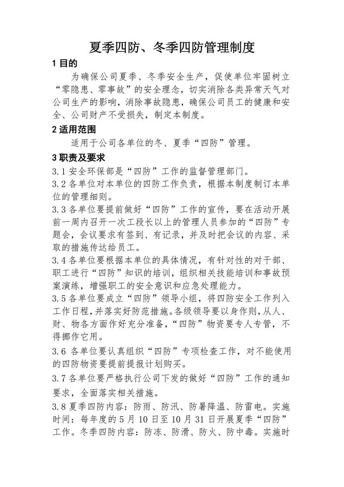 夏季四防、冬季四防管理制度docx