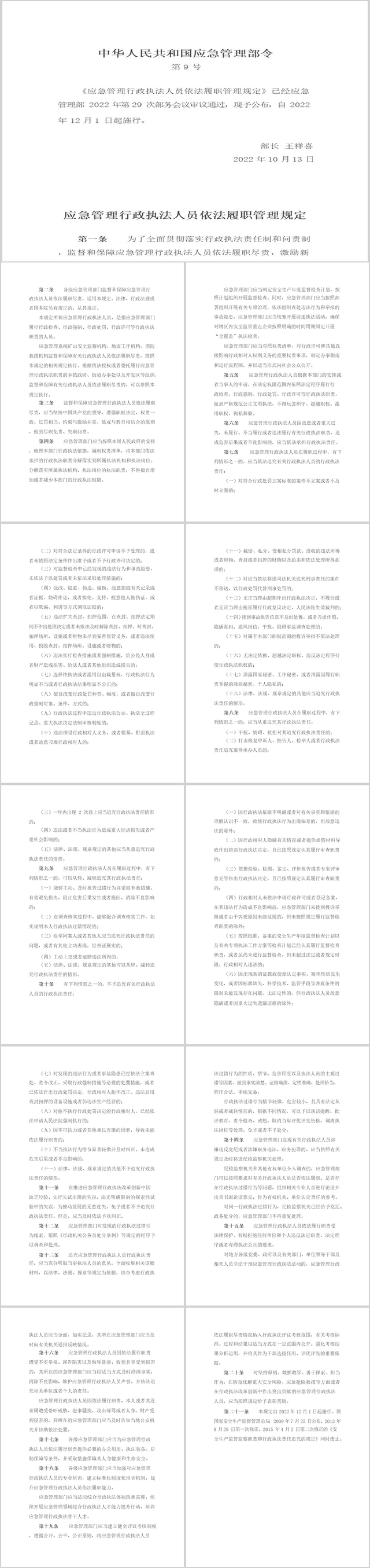 2022年12月實施《應(yīng)急管理行政執(zhí)法人員依法履職管理規(guī)定》pptx