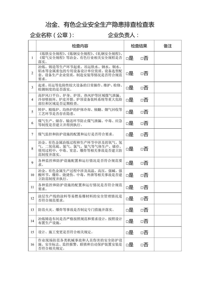 化工企業(yè)安全生產(chǎn)隱患排查檢查表doc