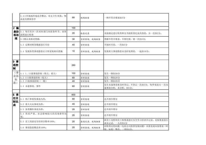 食品生產(chǎn)企業(yè)年度安全績效考核表xls