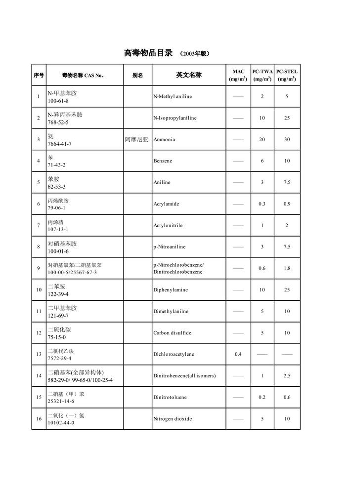 《高毒物品目錄(2003年版)》xls