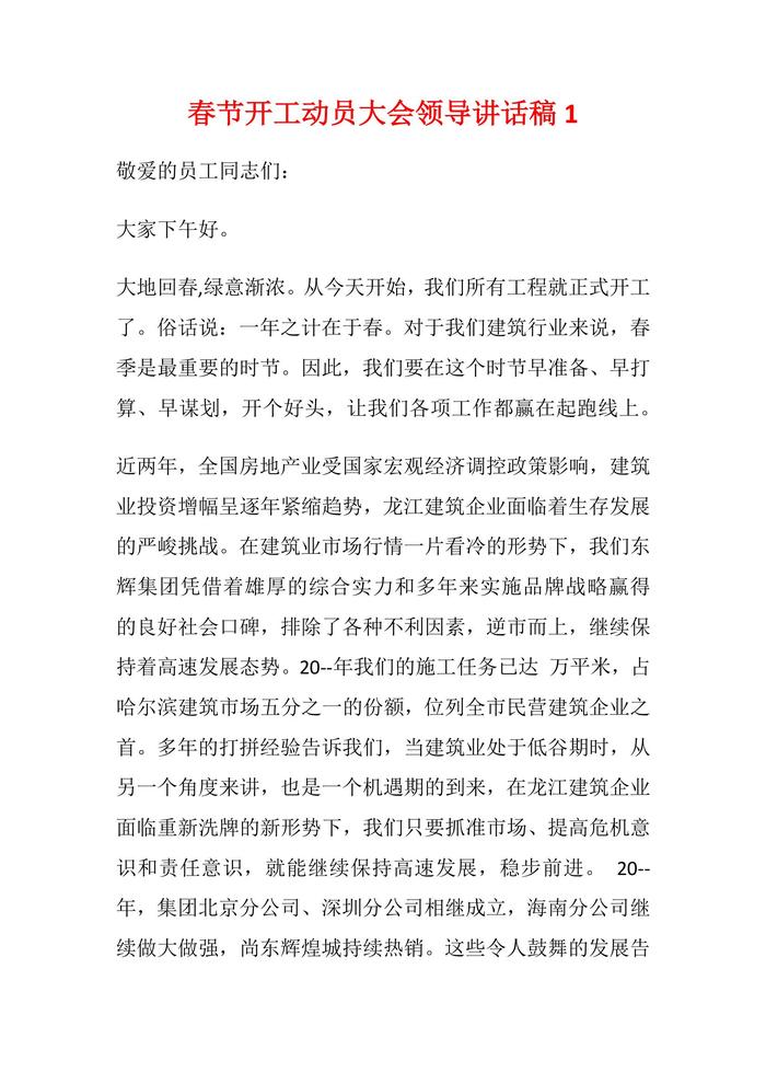 春節(jié)開工動員大會領(lǐng)導(dǎo)講話稿docx