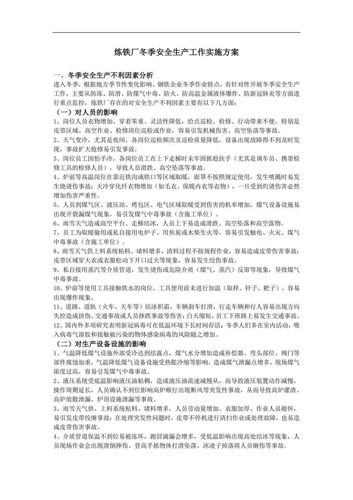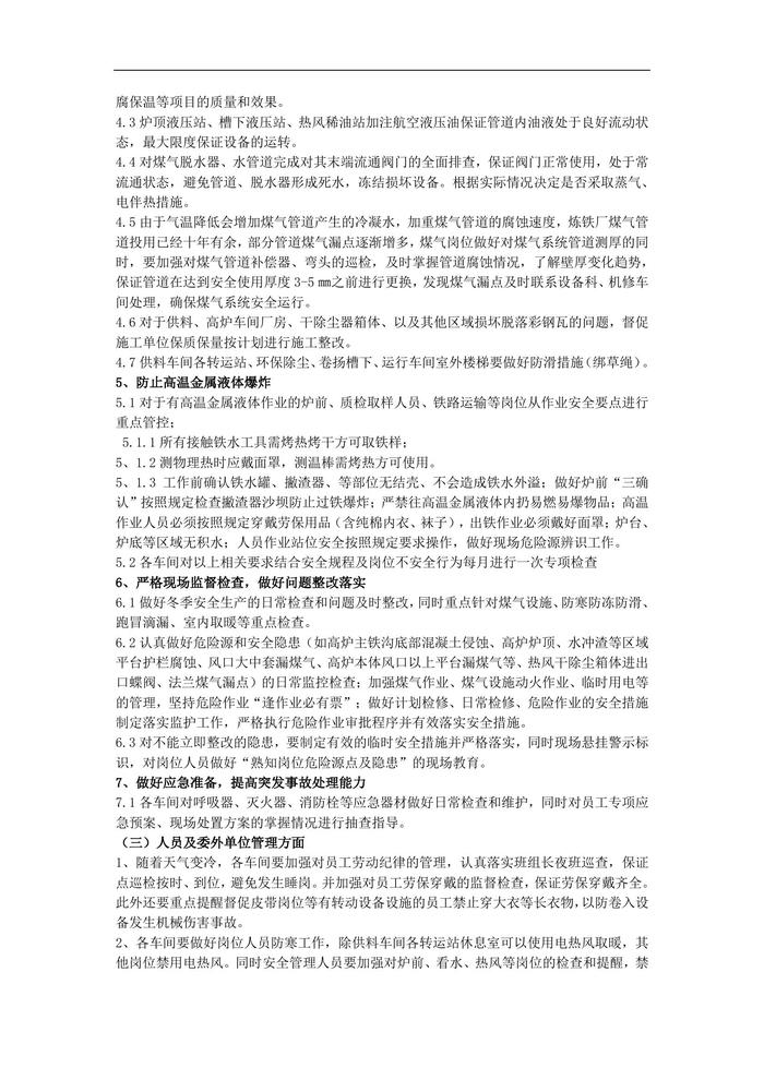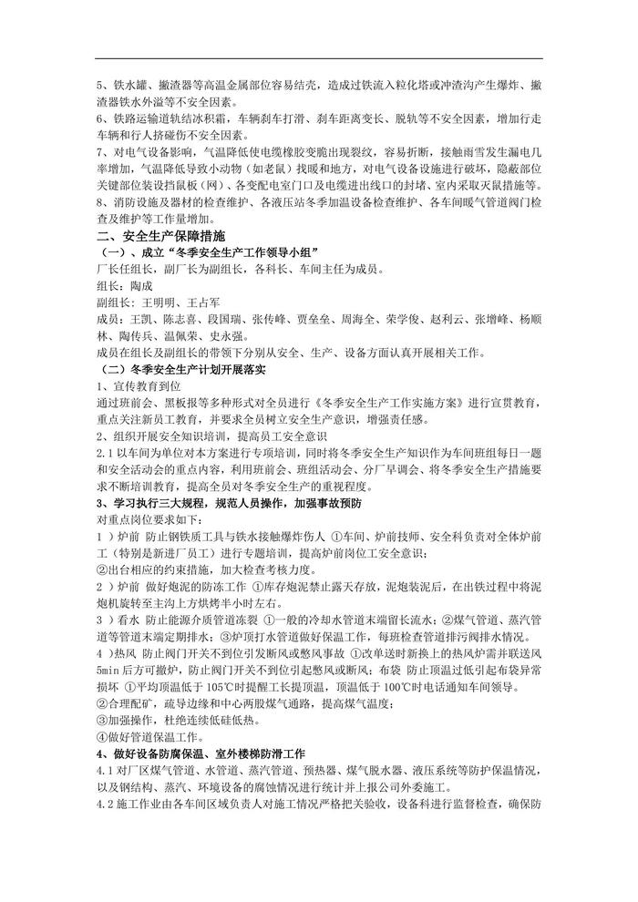2022煉鐵廠冬季安全生產(chǎn)方案doc