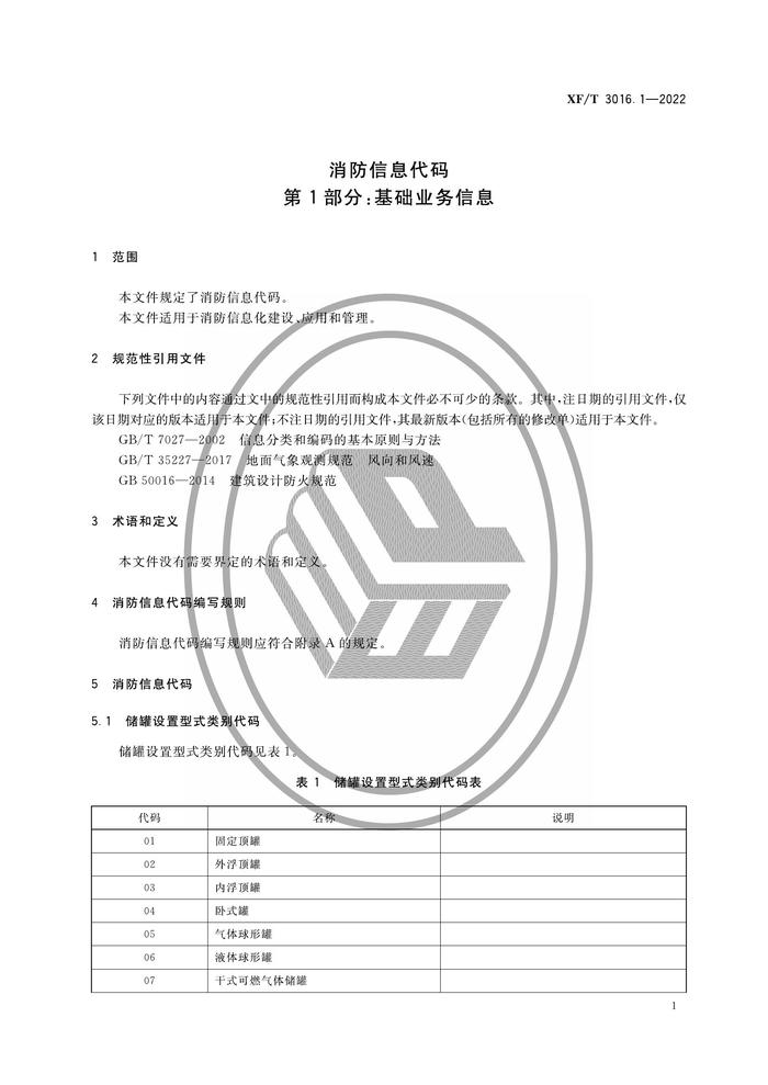 XFT 30161-2022 消防信息代碼第1部分:基礎(chǔ)業(yè)務(wù)信息pdf
