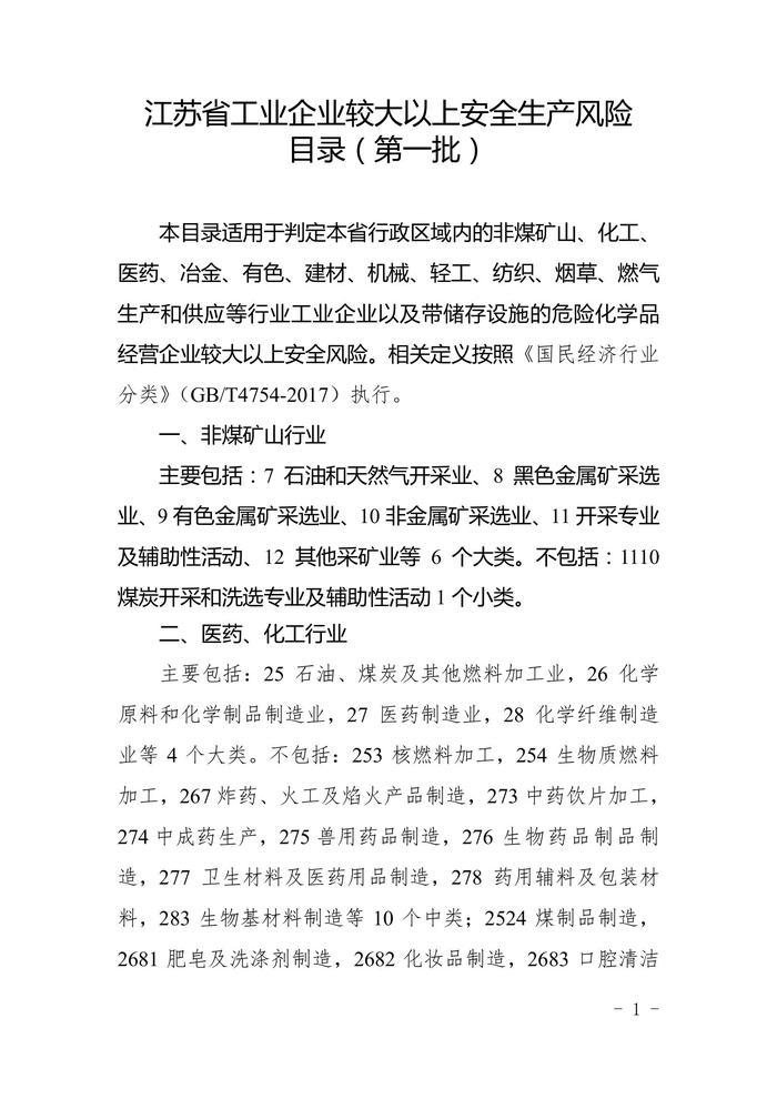 江蘇省工業(yè)企業(yè)較大以上安全生產(chǎn)風險目錄(第一批)doc