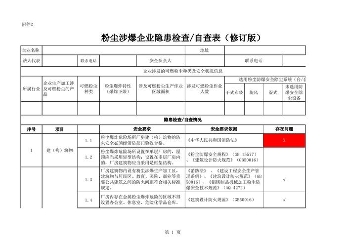粉塵涉爆企業(yè)隱患檢查自查表(修訂版)xlsx
